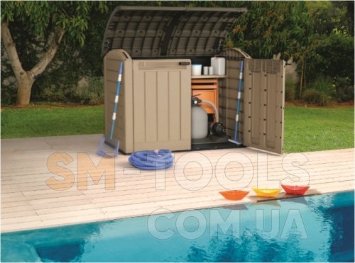 Свежий взгляд на хранение инструмента и садового инвентаря - садовые ящики производства компании Keter. Простой и в то же время элегантный дизайн, универсальный цвет и текстура, имитирующая натуральное дерево, позволяют разместить ящик в любом месте в саду или загородном участке, дополнив общую композицию. Благодаря габаритным размерам, в ящике много пространства для хранения тяжелого оборудования и инструментов: газонокосилки, барбекю, садовой мебели, садового инвентаря, а также крупных мусорных баков - конструкция предусматривает крепление крышек мусорных баков к крышке ящика для хранения, упрощает использование и открытие ящика для выбрасывание мусора. Порог ящика имеет закругленную форму, благодаря чему габаритные предметы легко помещать внутрь. Перед монтажом ящика важно подготовить поверхность в соответствии с рекомендациями производителя - тщательно очистить и выровнять, это обеспечит длительную и правильную эксплуатацию изделия.