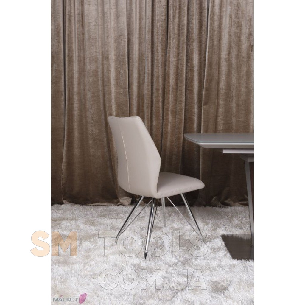Прочный и надёжный каркас стула изготовлен из металла и фанеры. Металлические хромированные ножки имеют необычную фигурную форму. На ножках есть пластиковые "пяточки", которые защищают пол от повреждений.