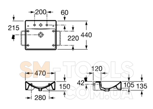 DIVERTA умывальник 47*44см, с отверстием под смеситель, с переливом