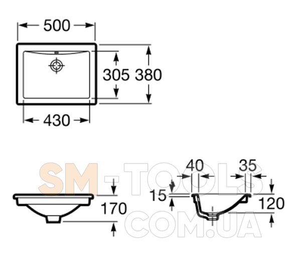 DIVERTA умывальник встраиваемый 50*38см, без отверстия под смеситель, с переливом