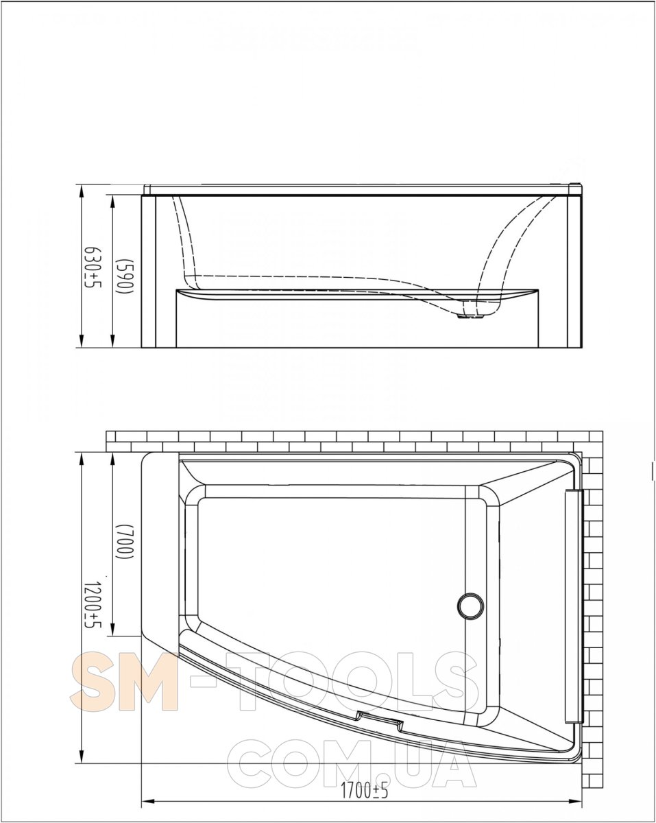 Ванна асимметричная без гидромассажа, 1700*1200*630мм, правая, акриловая