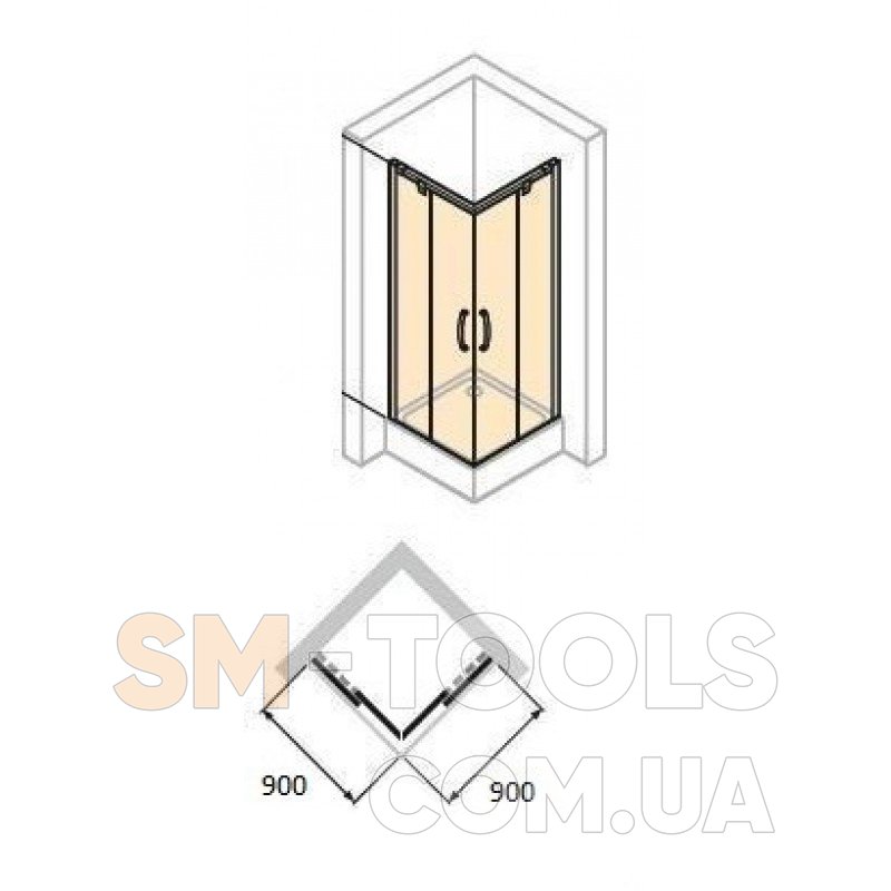 Кабина душевая, квадратная, 900*900*1900 мм, стекло, двери раздвижные, хром