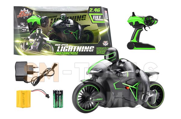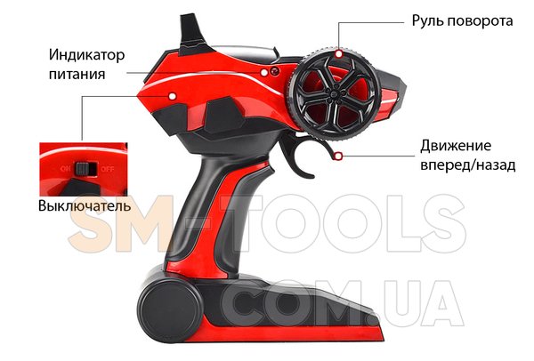 В комплекте с мотоциклом идет очень удобный пульт дистанционного управления «пистолетного типа». Вы можете легко удерживать его одной рукой и не терять контроль над моделью в радиусе 70 метров!