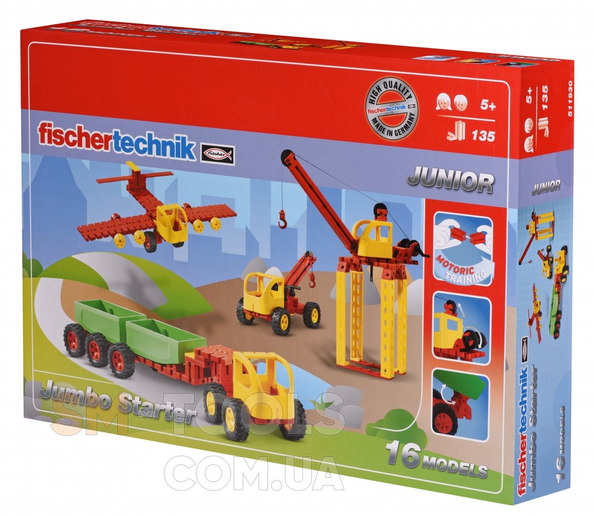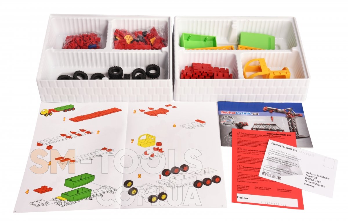 В этом конструкторе 16 моделей: различные машины, строительная техника, а также самолет и вертолет. Конструктор fischertechnik развивает детскую фантазию и пространственное мышление.