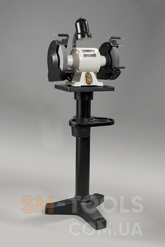 В базовом оснащении на валу станка смонтирован камень для «обдирки» (быстрого грубого съёма материала) и для чистовой заточки инструмента. Установлены защитные ограждения кругов из листовой стали, каждое из которых оборудовано прозрачным экраном и регулируемым упором под инструмент. Для освещения рабочей зоны предусмотрена лампа на гибком кронштейне. За дополнительную плату можно приобрести напольную подставку в виде массивной чугунной стойки с полкой-кронштейном для ёмкости с водой.