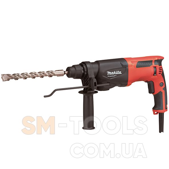 Makita M8700 – новинка, которой гигант решил порадовать своих поклонников и неизменных пользователей. Этот перфоратор является аналогом HR2460. При этом он получил ряд улучшений, которые не могут не радовать. Корпус инструмента изготовлен из прочного полиамида. Он армирован стекловолокном внутри. Таким образом удалось достичь высокой прочности. Теперь падения и удары не страшны. Основной хват обрезинен чем частично снижает вибрации и упрощает удержание. Дополнительная рукоятка вариабельна и выставляется под требуемым углом.