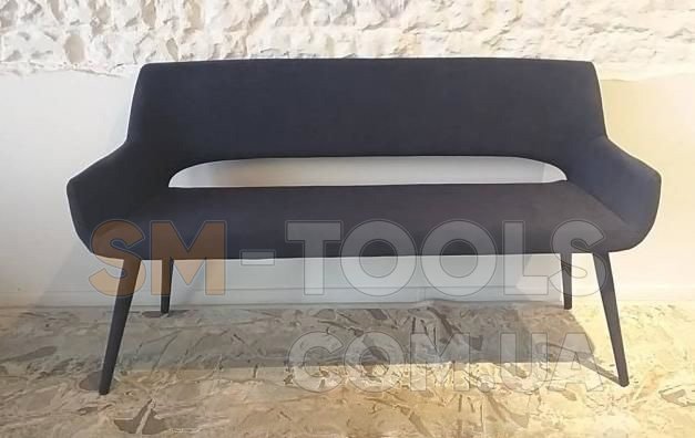 Обивкой послужила высококачественная плотная ткань, ножки выполнены из металла.