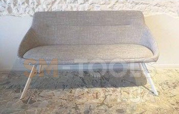Обивкой послужила высококачественная плотная ткань рогожка, ножки выполнены из металла белого цвета.