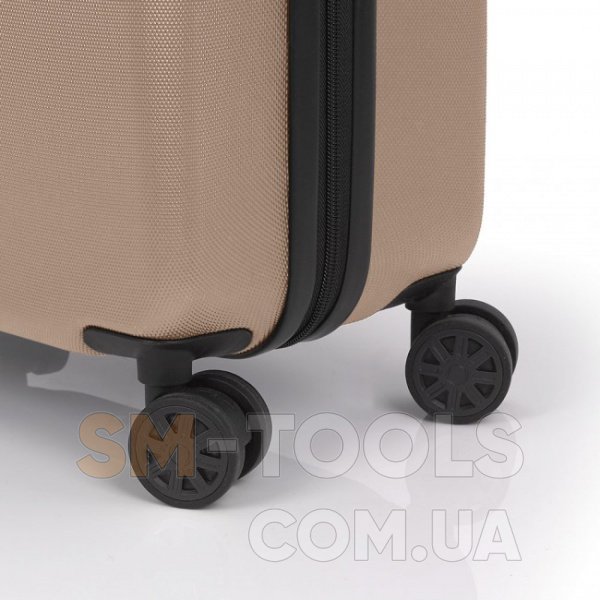 Чемодан оснащен четырьмя полноповоротными колесами с возможностью независимого разворота каждого колеса на 360 °. Системой предусмотрено равномерное перераспределения нагрузки на каждое колесо, что в свою очередь способствует плавному качению и маневренности чемодана, прилагая при этом минимум усилий. Колеса изготовлены из высокотемпературного термопластичного полиуретана (TPU). Материал обладает прочностью сравнимой с пластиком, гибкостью силикона, а так же имеет повышенную устойчивость к перепадам температур. Отличительной особенностью колес из TPU материала является снижение шума до минимума при качении чемодана по неровной поверхности. Благодаря устойчивости к истиранию материал колес отличается длительным сроком эксплуатации.