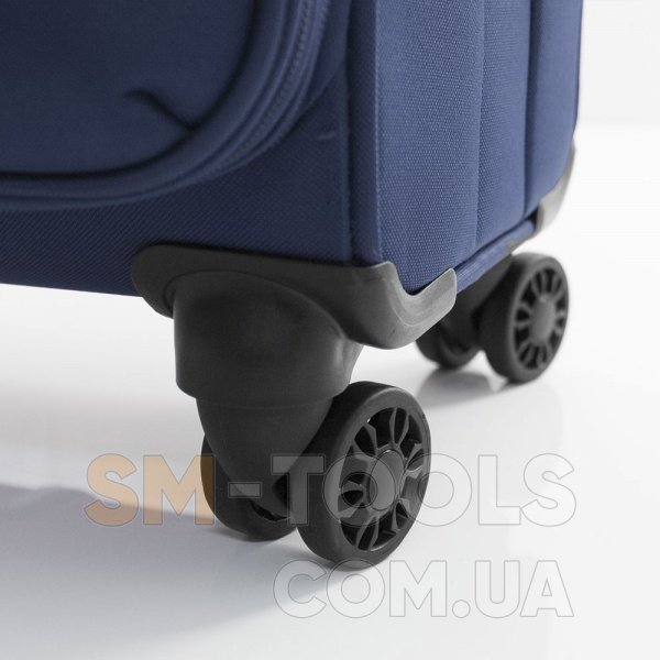 Чемодан оснащен четырьмя спаренными роликовыми колесами из высокотемпературного термопластичного полиуретана (TPU). Материал обладает прочностью сравнимой с пластиком, гибкостью силикона, а так же имеет повышенную устойчивость к перепадам температур. Отличительной особенностью колес из TPU материала является снижение шума до минимума при качении чемодана по неровной поверхности. Благодаря устойчивости к истиранию материал колес отличается длительным сроком эксплуатации.