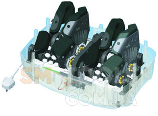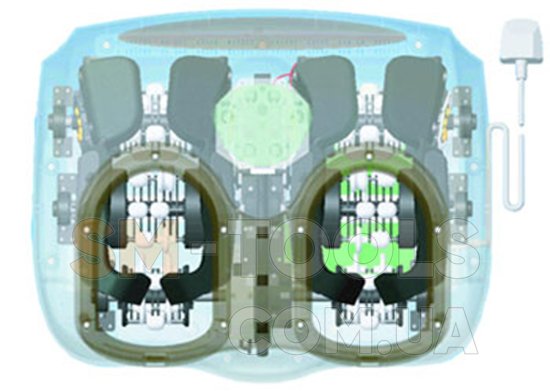 Специальная роликовая система производит мягкий массаж ног, тем самым устраняя напряжение и давление. Происходит стимулирование мышц , за счет чего устраняется отечность и болевые ощущения.