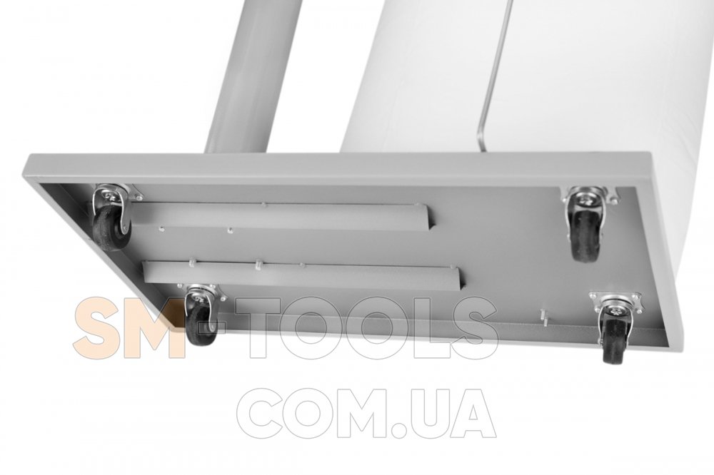 Стружкоотсос CORMAK FM300 имеет жесткую конструкцию, в основании которой установлены ролики для удобного перемещения.