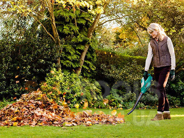 Скорость воздуха в 210 км/час, которая обеспечивает легкое удаление листьев на террасах и на участках в саду.