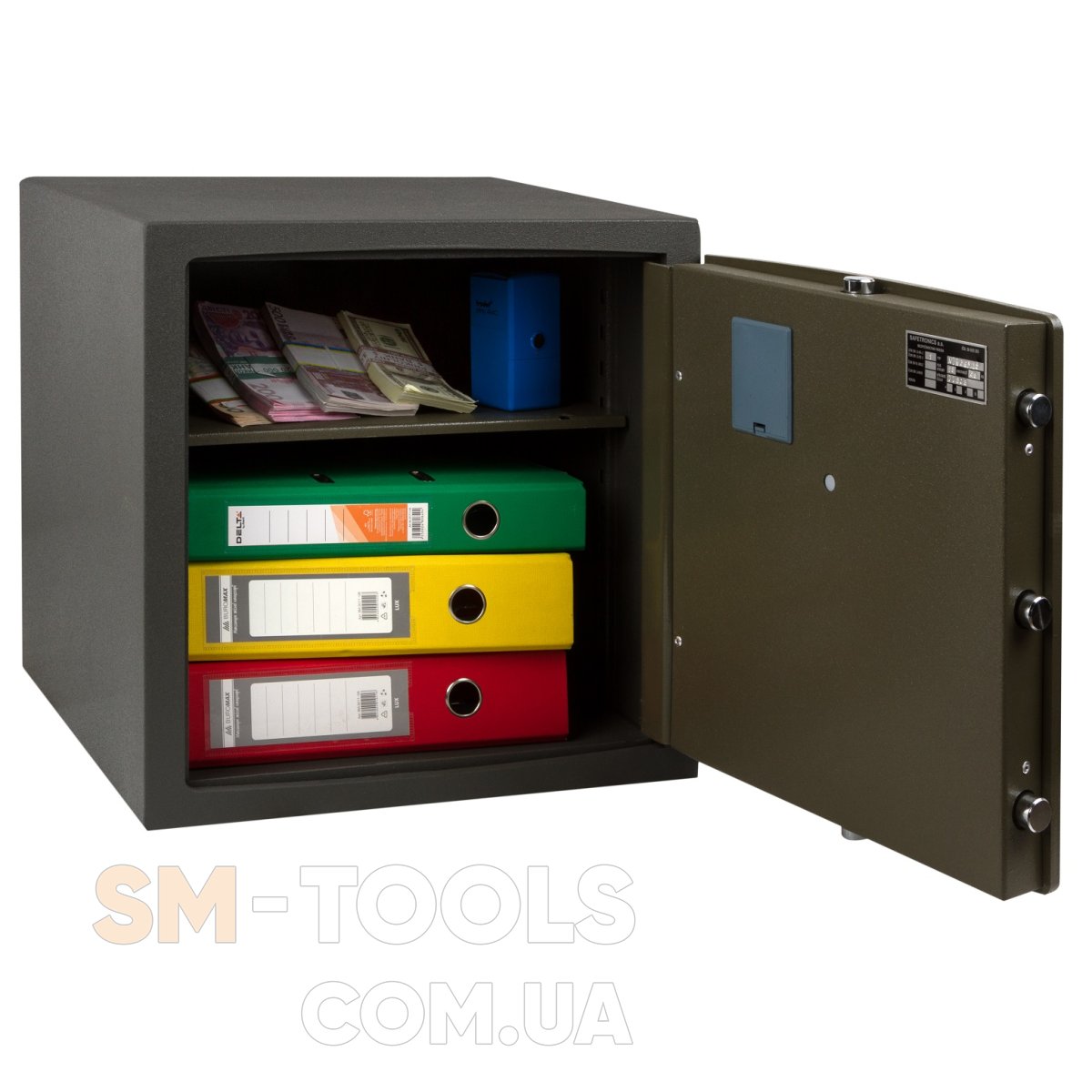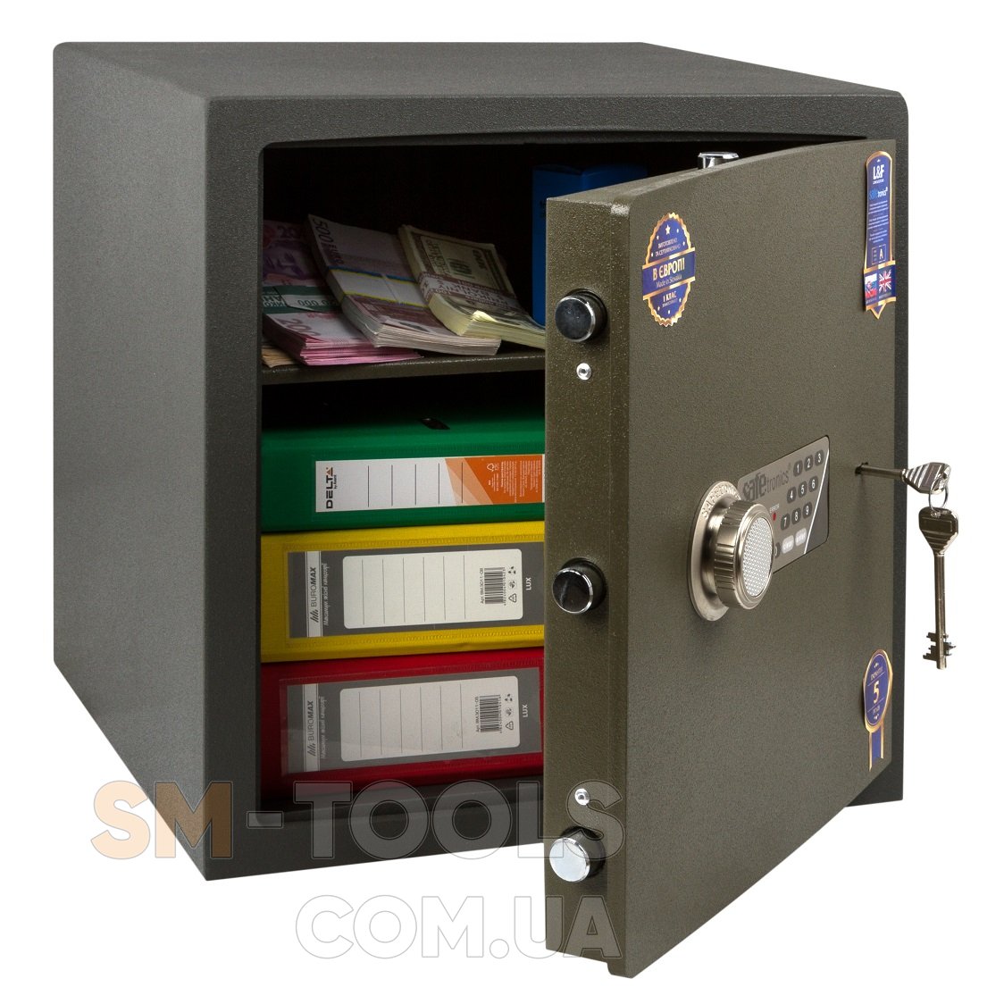 MLGs - тройная защита, механический ключ + электронный кодовый замок + кассовая ячейка. Созависимые замки, нельзя открыть сейф без ключа и кода. Дополнительный ключ на кассу.