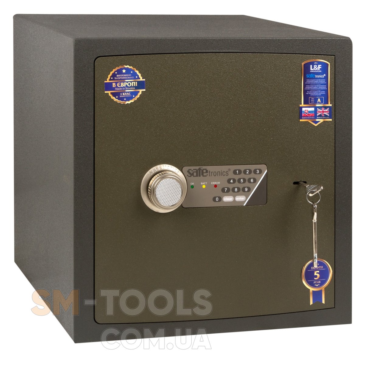 MЕ – механический мастер-ключ + электронный кодовый замок. Независимые замки (можно открыть одним или другим), хранить ключ следует в другом месте, чем сейф. Ключ поможет, когда разрядилась батарейка электронного замка или нужно открыть, не используя электронный замок (не хотите сообщать код).