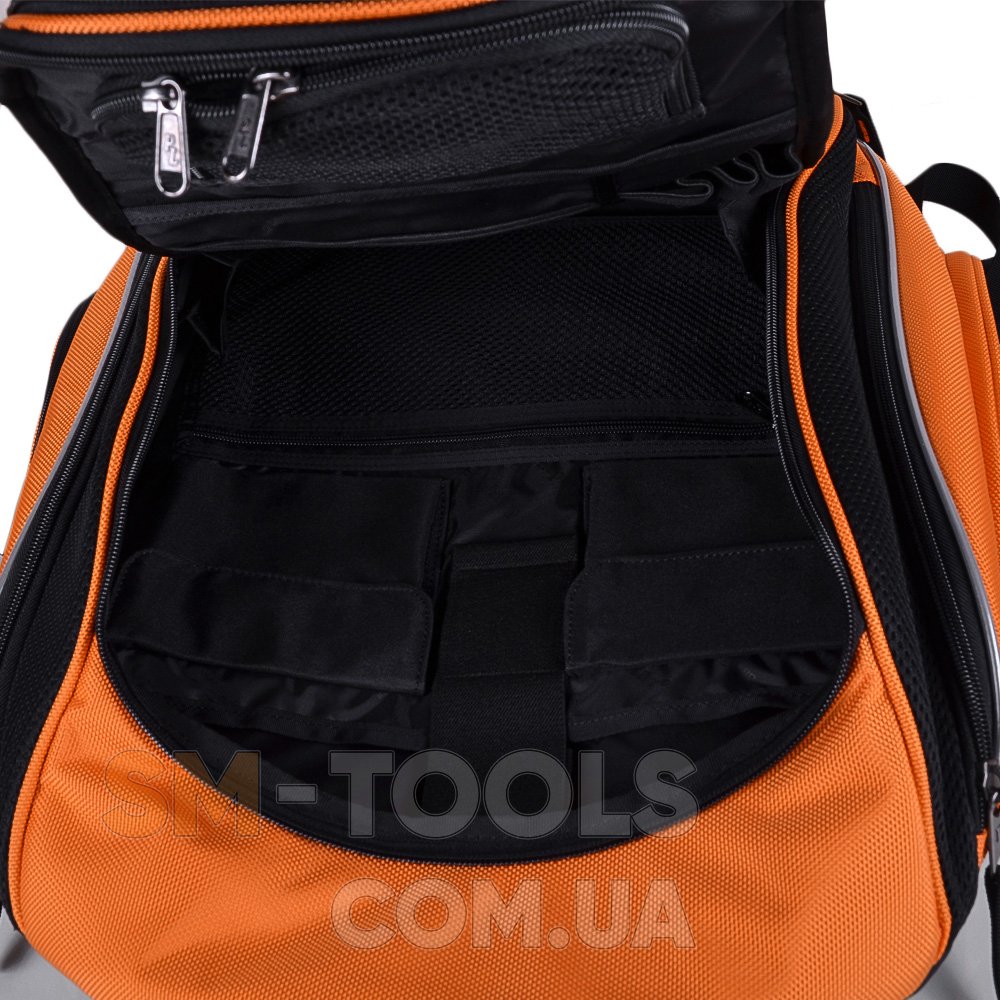 - одно большое отделение на молнии с двумя бегунками, в котором присутствует мягкий и уплотненный карман на липучке для ноутбука (диагональю до 15,4") и бесчисленное множество карманов разнообразных форм и размеров как с различными застежками, так и без них, а также 3 держателя для ручек или стилусов;