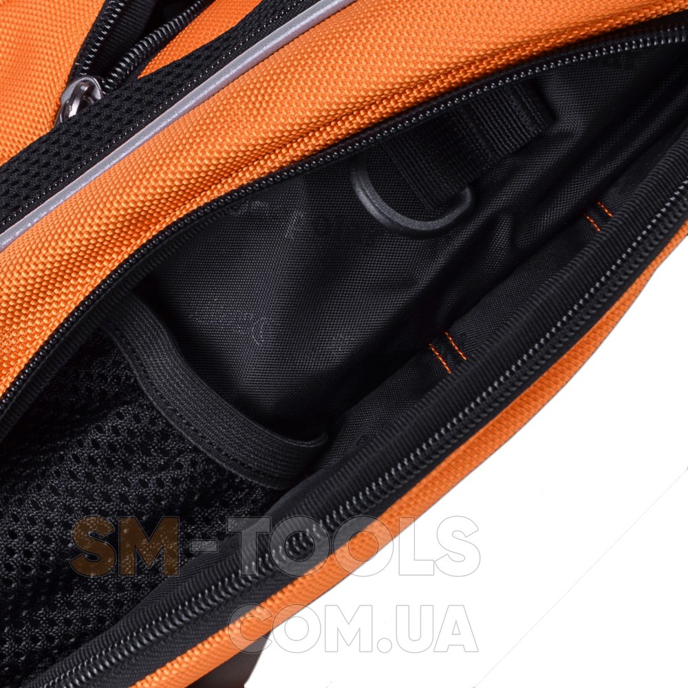 - на лицевой стороне рюкзака находятся 2 отдельных друг от друга кармана на молнии, в одном из которых есть выход для наушников и карманчик-сетка на липучке; такая система позволит вам наслаждаться музыкой в то время, как плеер хорошо защищен в специальном кармане рюкзака;