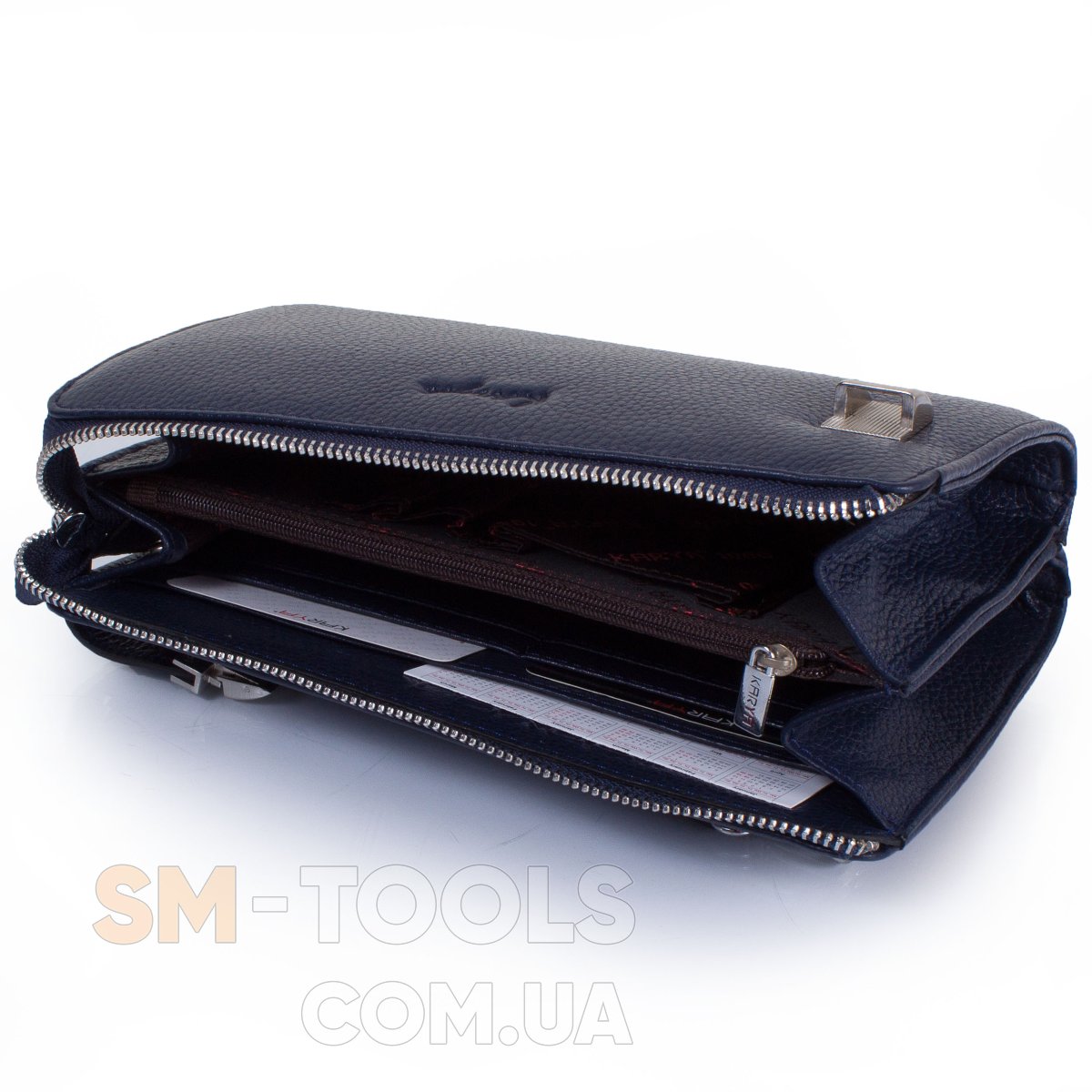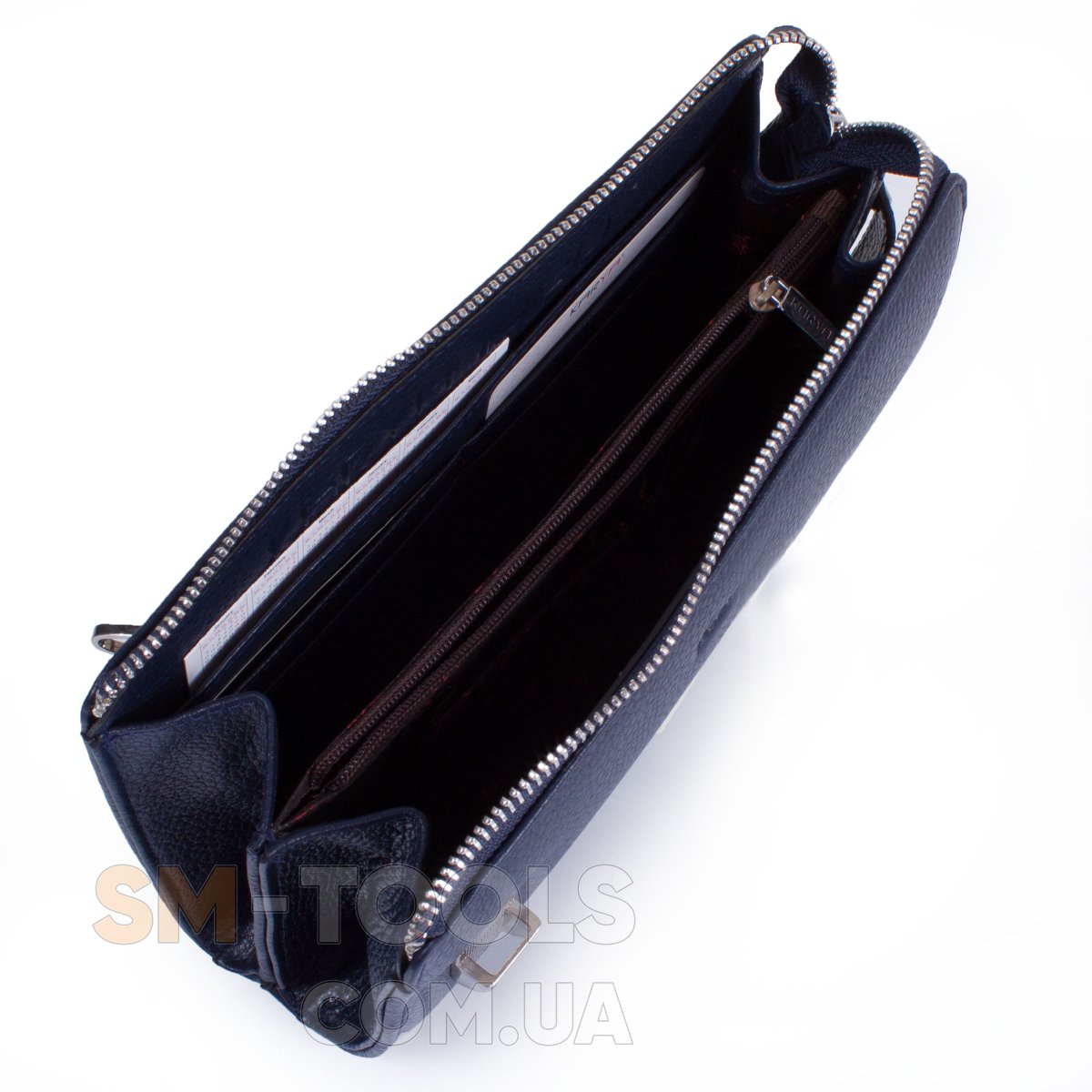 Борсетка закрывается при помощи молнии, собачка на ней имеет дополнительную механическую застежку.