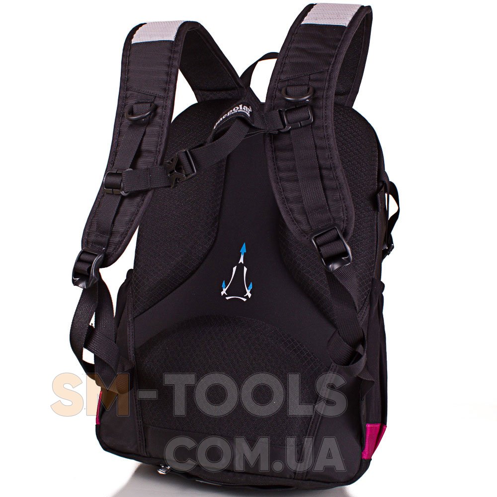 Спинка рюкзака имеет специальную вставку из плотного, но при этом гибкого материала. Она отличается трехсторонней системой вентиляции спины (три специальные подушки, обтянутые сетчатым материалом, образуют каналы, по котрым свободно циркулирует воздух, обеспечивая идеальную вентиляцию).