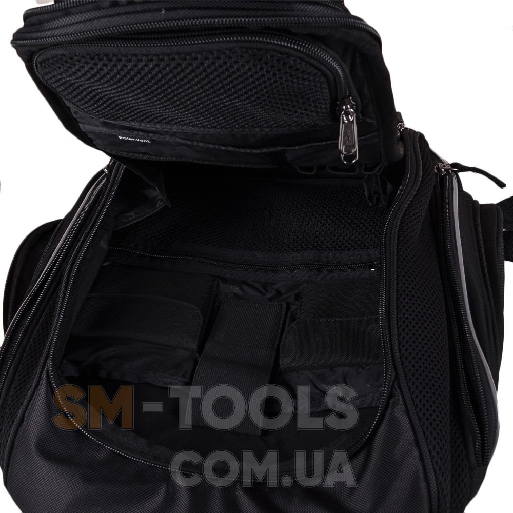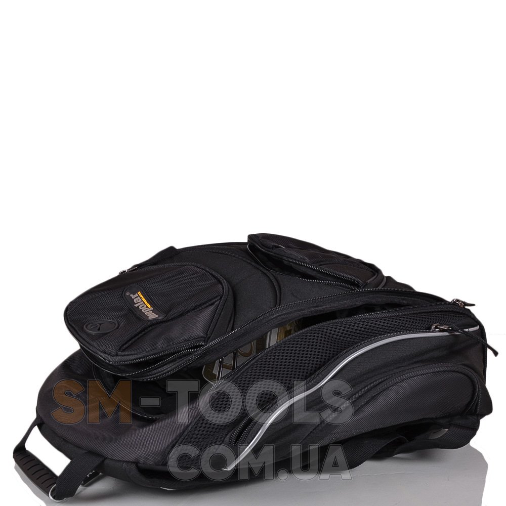 Удобный и вместительный рюкзак, с которым вы можете ходить на прогулку по городу и на работу. Большим его преимуществом есть то, что у него много карманов. На лицевой стороне есть два кармана на молнии и отверстие для наушников. По бокам также присутствуют три кармана на молнии. Внутри рюкзака есть одно отделение, два кармана-сеточка на молнии, два кармана на липучках, два отделения для ручек, четыре кармана для пластиковых карточек, один накладной карман и жесткий карман для нетбука. Шлейки рюкзака регулируются, сверху расположена небольшая ручка для переноса рюкзака в руке.