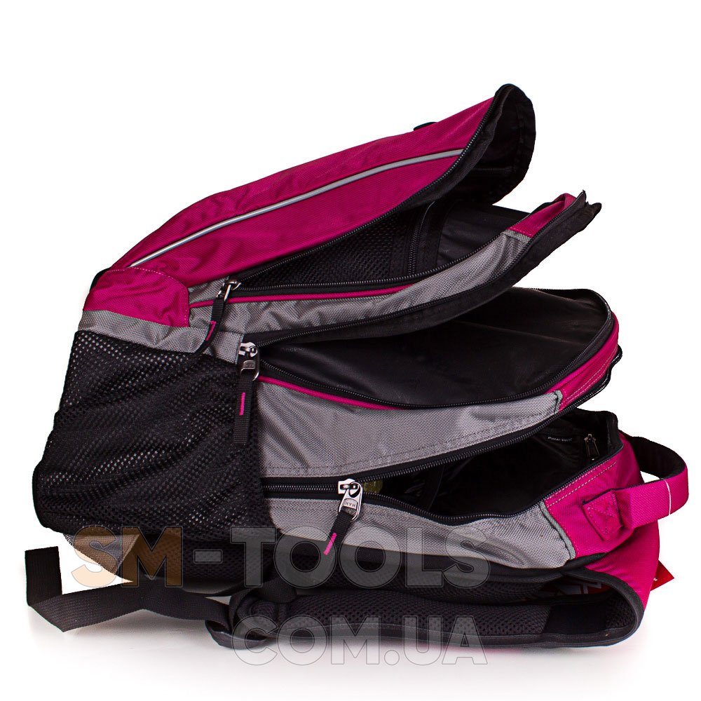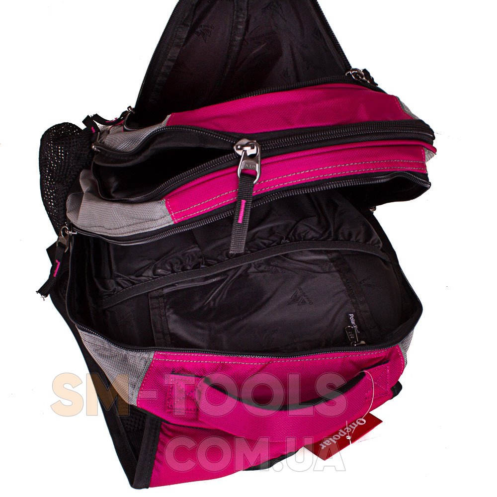 Основные и дополнительное отделения рюкзака закрываются при помощи молнии с двумя собачками.