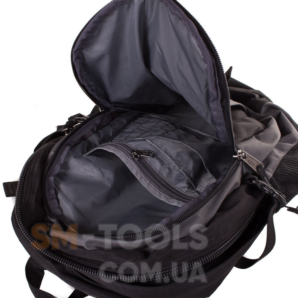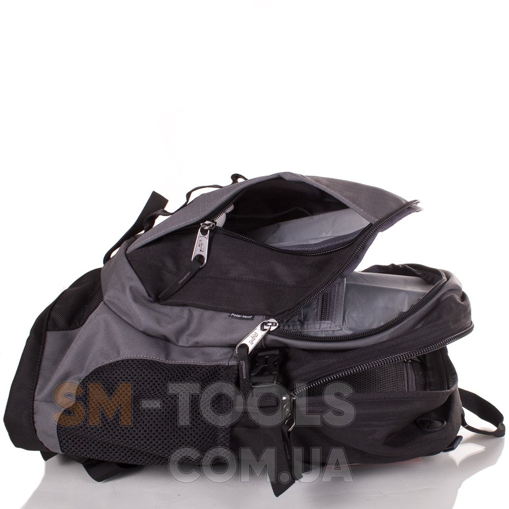 Рюкзак имеет два автономных отделения (каждое закрывается двусторонней молнией). В первом отделении располагаются: карман на молнии, три накладных кармана и 4 отделения для ручек. В другом - карман на молнии и большой накладной карман.
