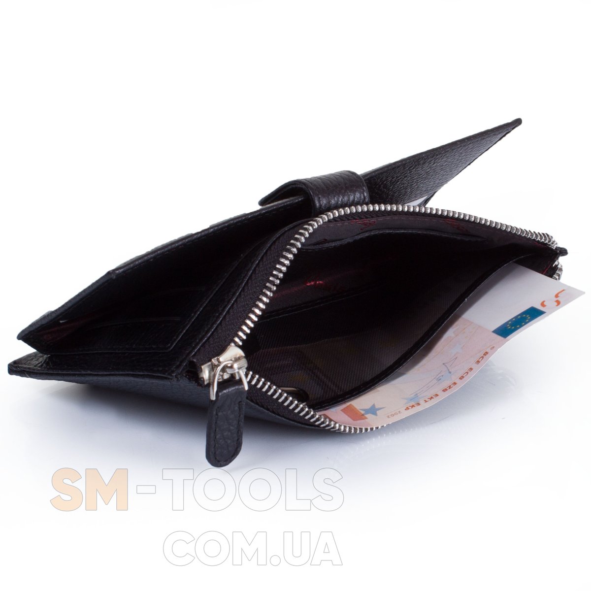 Отделения для визиток, банковских и дисконтных карт: 9. Все они закрываются при помощи хлястика на механической кнопке.