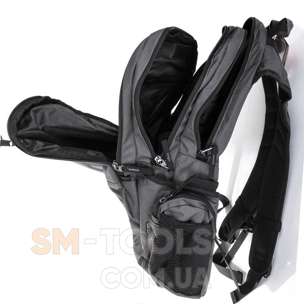 Рюкзак оснащен вместительными боковыми накладными карманами. Их всего 6 (2 кармана на липучке, 2 - на молнии, 2 - сетчатые на резинке).