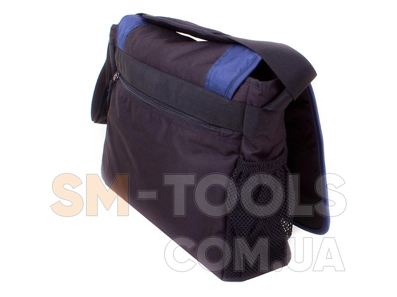Сумка закрывается широким клапаном на липучку, с фронтальной стороны имеет карман для документов на молнии и светоотражающую вставку.