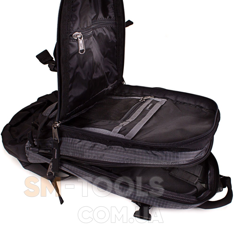 Изделие имеет компрессионные стяжки (4 боковые и 2 нижние), которые служат не только для регулировки объема рюкзака, но и для крепления различных предметов (например, каремата или коврика для йоги).
