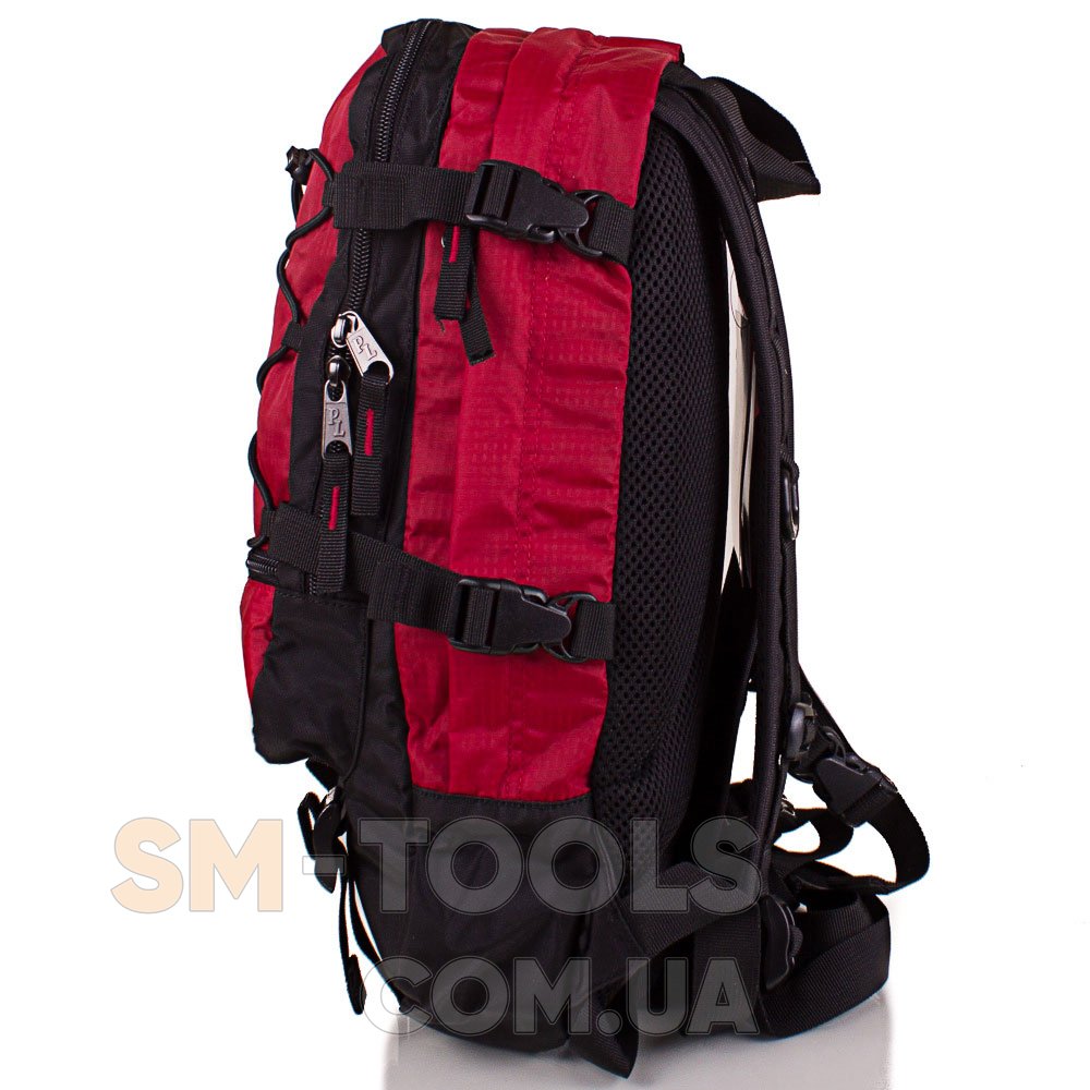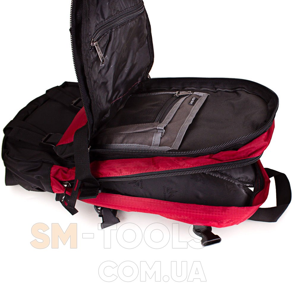 Изделие имеет компрессионные стяжки (4 боковые и 2 нижние), которые служат не только для регулировки объема рюкзака, но и для крепления различных предметов (например, каремата или коврика для йоги).