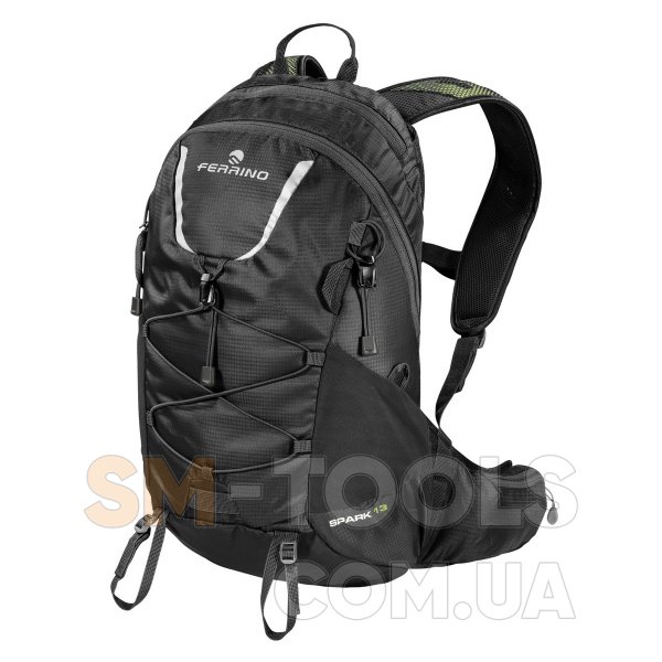 Серия спортивных рюкзаков Ferrino Spark интересна в первую очередь новой современной спинкой, имеющей малый вес, но при этом обеспечивающей и эффективную вентиляцию, и значительное удобство рюкзака. Мультифункциональные рюкзаки Ferrino Spark отлично подходят как для спортсменов регулярно занимающихся спортом, для туристов, путешествующих налегке, так и для активных людей, ведущих подвижный образ жизни в городе. Эти рюкзаки не дадут застать своего хозяина врасплох. От осадков они защищены водоотталкивающим покрытием ткани и водозащитной накидкой. Во время жары они позволяют разместить большой запас воды во флягах и гидратационной системе. В ночное время суток вступают в действие светоотражающие элементы, а если их недостаточно - есть специальная петля для фонарика-маячка. Экипировку, не вмещающуюся в рюкзак, можно закрепить на внешних креплениях, а множество необходимых мелочей разместить в карманах быстрого доступа, размещенных на поясе, на шлейке и сверху рюкзака. Основное отделение рюкзака имеет небольшой сетчатый карман с карабином для ключей. Необходимые регулировки шлеек и ремней позволяют точно подстроить рюкзак под пользователя практически любой комплекции.