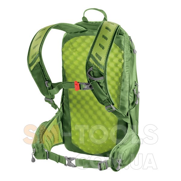 Спина: имеет современную систему вентиляции, благодаря комбинации гофрированной панели из EVA-пены и покрывающей ее сетки. Таким образом между спиной пользователя и спинкой рюкзака движется постоянный поток воздуха, а спинка при этом сохраняет и малый вес и компактность рюкзака.