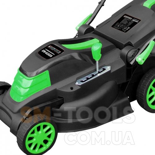 Газонокосилка работает на базе электрического двигателя мощностью в 1700 Вт, благодаря чему работа происходит в максимально тихом режиме без выбросов вредных примесей в атмосферу. Мотор оснащен всеми необходимыми системами защит, которые обеспечивают стабильную и бесперебойную работу, невзирая на возможные сбои с энергообеспечением.
