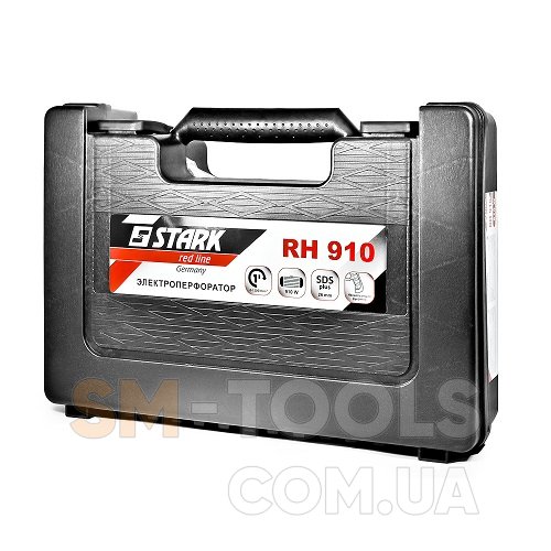 Stark RH-910 – электрический перфоратор для сверления с ударом, долбления в бетоне, кирпиче при строительных и ремонтных работах. Оборудован мощным двигателем, который вырабатывает 5 500 ударов в минуту с силой 2,7 Дж для быстрой и качественной работы.