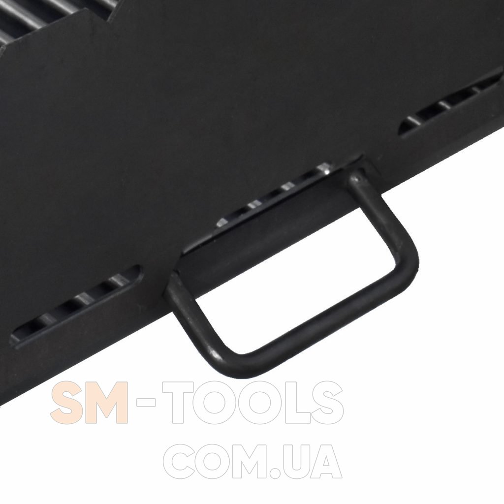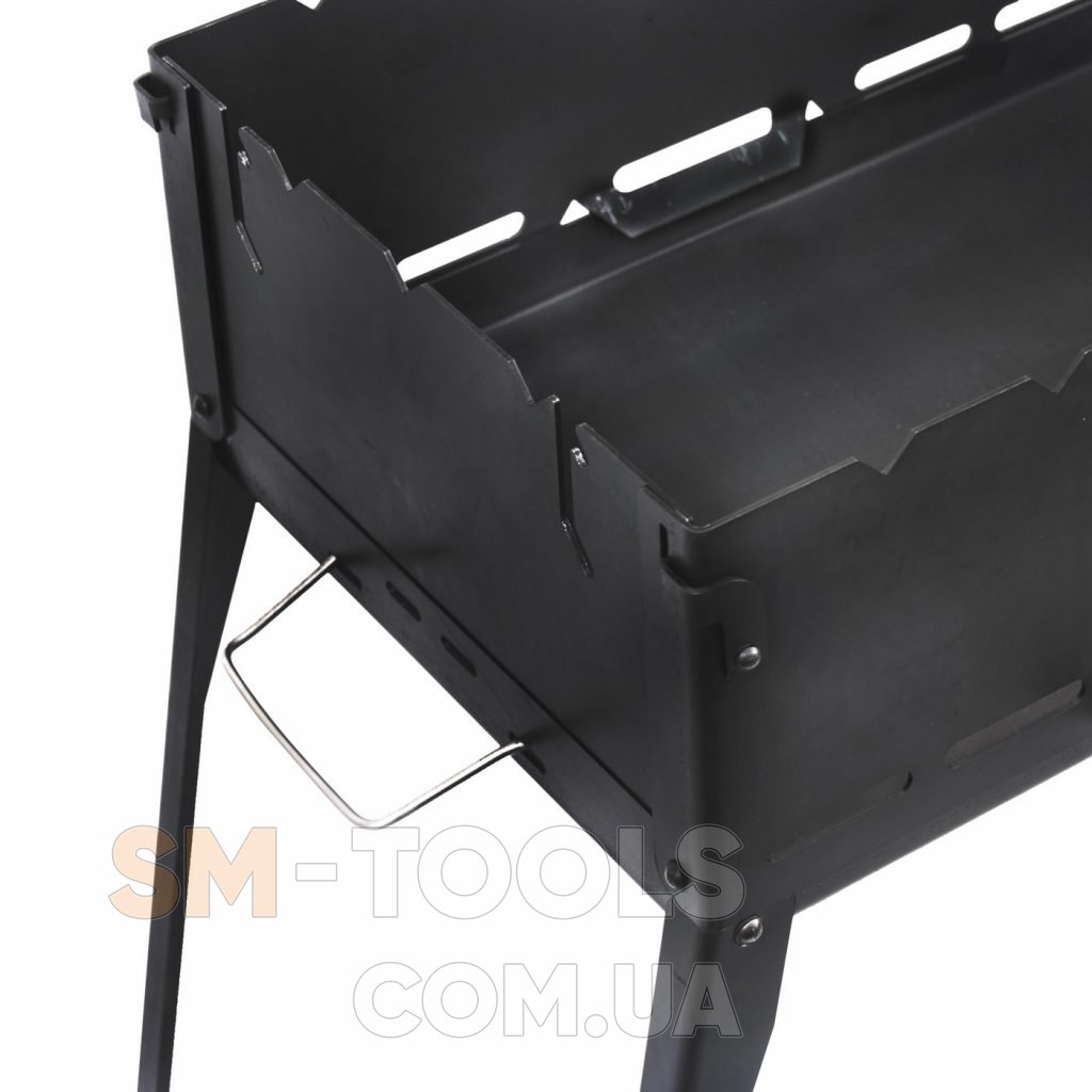 Команда ТМ MOUSSON при изготовлении своей продукции использует только новейшие и высококачественные материалы и технологии. Мангал PROMETEO Q 6 V изготовлен из горячекатаной стали высокого качества толщиной 2 мм, которая делает его чрезвычайно устойчивым к прогоранию и деформации. Кроме того, сталь обработана при помощи технологии «воронение», которая позволяет не только придать стали эстетический вид, но и уберечь ее от коррозии. Все детали мангала склепаны между собой, а сам мангал слаживается в форму удобного кейса, что не позволит Вам потерять важную деталь и занимает мало места. Мангал оборудован центральной ручкой, а также двумя дополнительными боковыми ручками, которые не нагреваются.