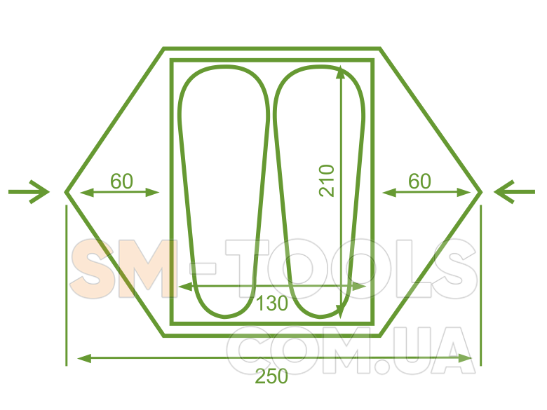 Внешний тент: 400T 20D Ripstop Nylon Silicone / PU 3000 mm W / R. (Нейлон, Рипстоп, силиконовое водоотталкивающее покрытие 3000 мм)