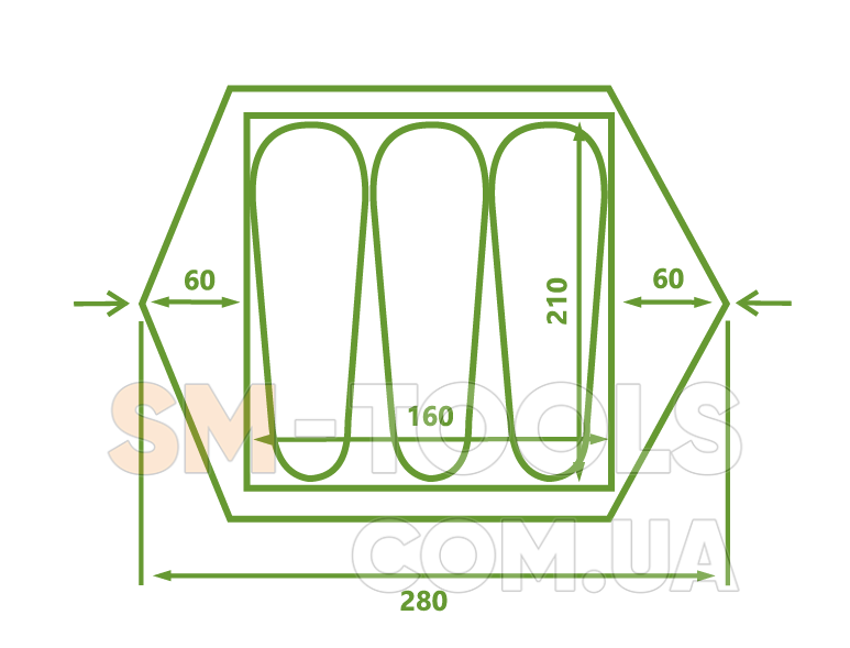 Пол: 210T 70D Nylon PU5000mm W / R (нейлон, водоотталкивающее покрытие 5000 мм)