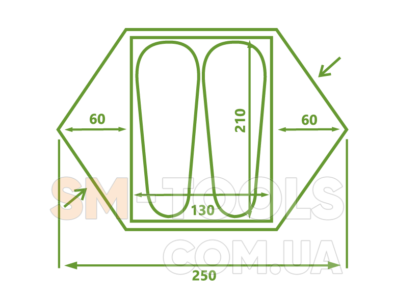 Внешний тент: 400T 20D Ripstop Nylon Silicone / PU 3000 mm W / R. (Нейлон, Рипстоп, силиконовое водоотталкивающее покрытие 3000 мм)