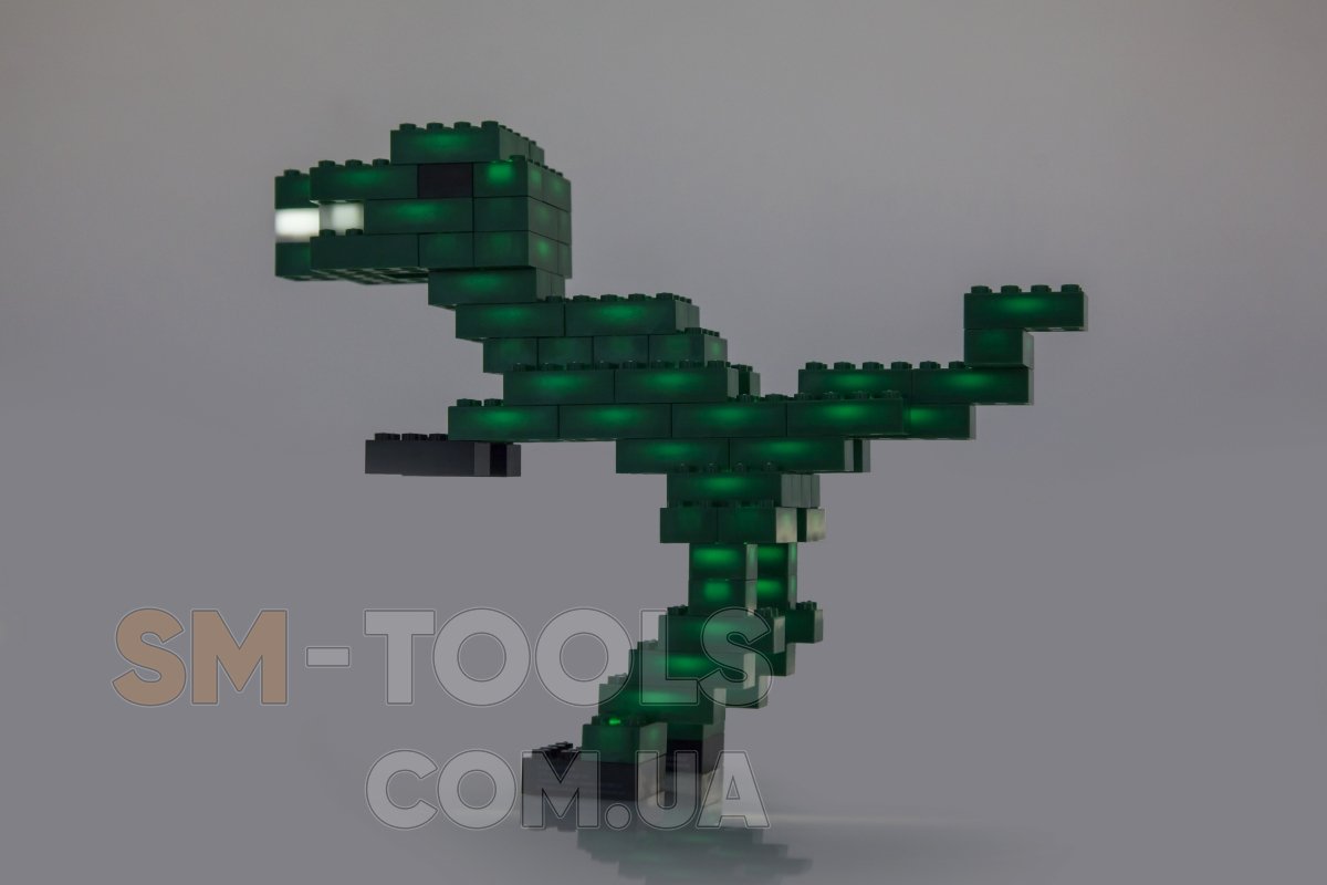 Создайте свой собственный зоопарк с гигантскими динозаврами, гигантскими черепахами и мощными крокодилами. В набор LIGHT STAX Reptiles входят 104 кирпичики зеленого, красного, желтого и белого цветов. Элементы совместимы с LEGO®, поэтому можно комбинировать детали, создавая невероятные фигуры существ, светящиеся в темноте: фантастических драконов с горящими огненными пастями, древних динозавров с мерцающими глазами или ящеров, меняющие свой окрас. Все элементы конструктора оснащены светодиодом и имеют три режима подсветки: непрерывное освещение, мерцание и разгорания-затухания. Кирпичики питаются от базы-аккумулятора, которая одновременно может заряжать сотни элементов. База-аккумулятор заряжается по кабелю USB от любого источника энергии: зарядного устройства смартфона, внешней батареи или же ноутбуке.