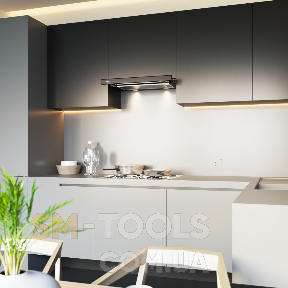 Storm 700 60 BL - встроенная вытяжка, которую можно интегрировать в абсолютно любой дизайн, а выдвижная панель обеспечит дополнительное втягивания и управления режимами вытяжки.