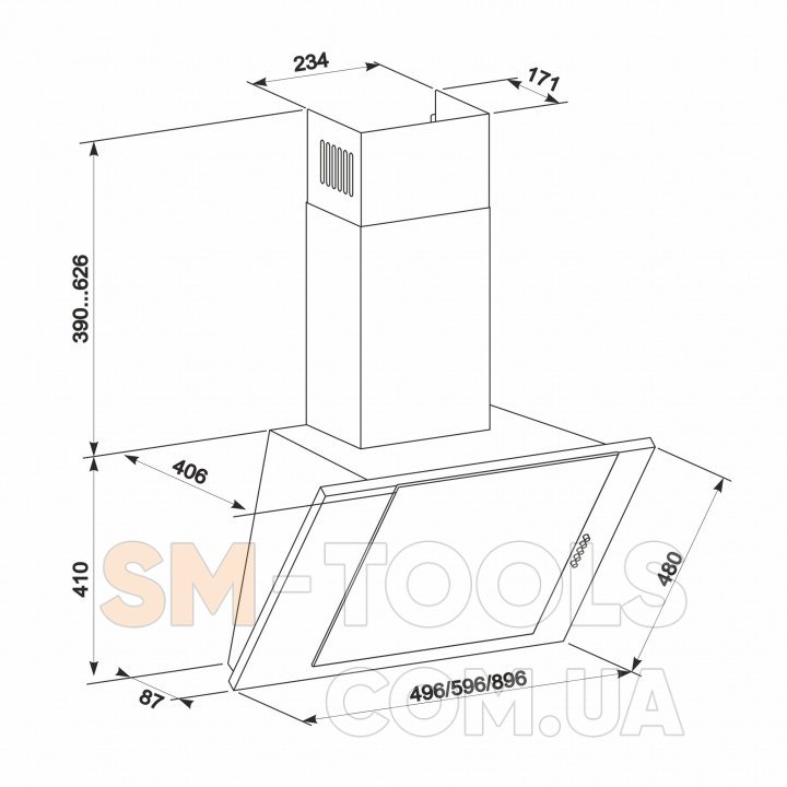 Вытяжка декоративная наклонная Eleyus Titan A 750 LED SMD 60 WH