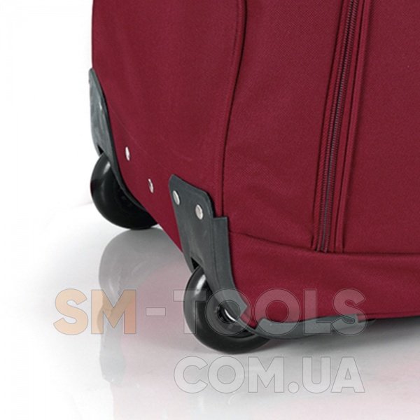 Сумка оснащена парой надежных роликовых колес. Колеса изготовлены из высокотемпературного термопластичного полиуретана (TPU). Материал обладает прочностью сравнимой с пластиком, гибкостью силикона, а так же имеет повышенную устойчивость к перепадам температур. Отличительной особенностью колес из TPU материала является снижение шума до минимума при качении чемодана по неровной поверхности. Благодаря устойчивости к истиранию материал колес отличается длительным сроком эксплуатации.