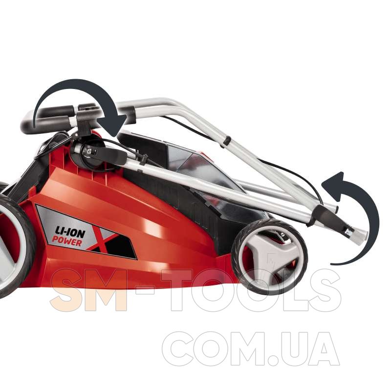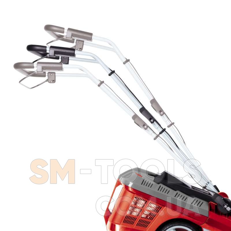 Новая аккумуляторная газонокосилка линейки Power X-Change system Einhell GE-CM 43 Li M Kit серии Expert plus - высококачественный, надежный и очень мощный инструмент, который заботится о газонах среднего размера без подключения к розетке. Она оснащена новыми Power X-Change аккумуляторными батареями 2 шт. Li-Ion 18В, 4,0 Ач для длительной работы без каких-либо назойливых удлинителей и силовых кабелей. Аккумуляторы имеют индикатор уровня зарядки аккумулятора с тремя светодиодами, где вы можете проверить текущий уровень заряда с одного взгляда. Кроме того, аккумуляторы могут быть использованы для всех инструментов линейки Power X-Change. В комплекте идут 2 шт. высокоскоростных зарядных устройства. Для удобства регулировки высоты стрижки есть центральная 6 уровневая регулировка выбора высоты среза травы. Аккумуляторная газонокосилка Einhell GE-CM 43 Li M Kit оснащена складной, длинной ручкой, которая регулируется по высоте в трех положениях, она может быть отрегулирована идеально для пользователей любого роста и позволяет хранить в сложенном виде газонокосилку в минимальном пространстве. Большие колеса газонокосилки оказывают меньшую нагрузку на газон. Травосборник на 63 л оснащен индикатором уровня, так что вы можете сразу увидеть, когда пришло время его очистить. Для удобства транспортировки существует встроенная ручка. Аккумуляторная газонокосилка Einhell GE-CM 43 Li M Kit рекомендуется для газонов площадью 500 м².
