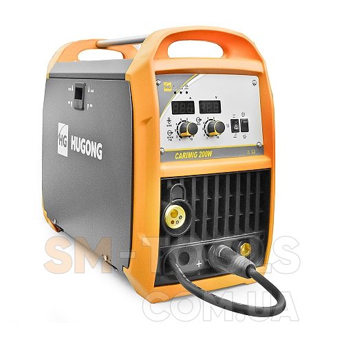 Hugong CariMig 200W – сварочный инвертор для ручной дуговой, аргонодуговой сварки, а также для полуавтоматической сварки. Универсальный аппарат, который работает как от электродов, так и от проволоки.