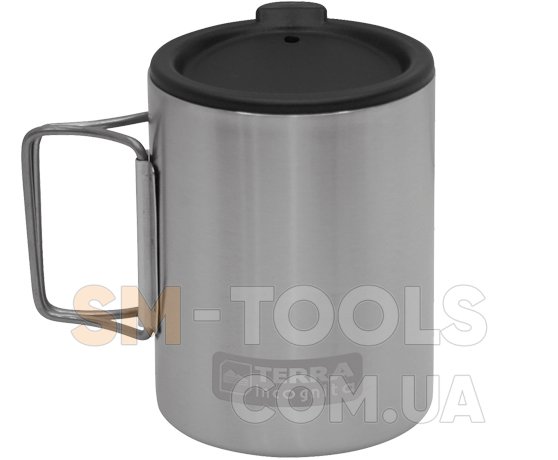 Термокружка туристическая с крышкой и складными ручками. Изготовлена из 100% нержавеющей стали. Конструкция с двойными стенками и вакуумной изоляцией между стенками, а также удобной крышкой позволяет длительное время сохранять температуру напитка.