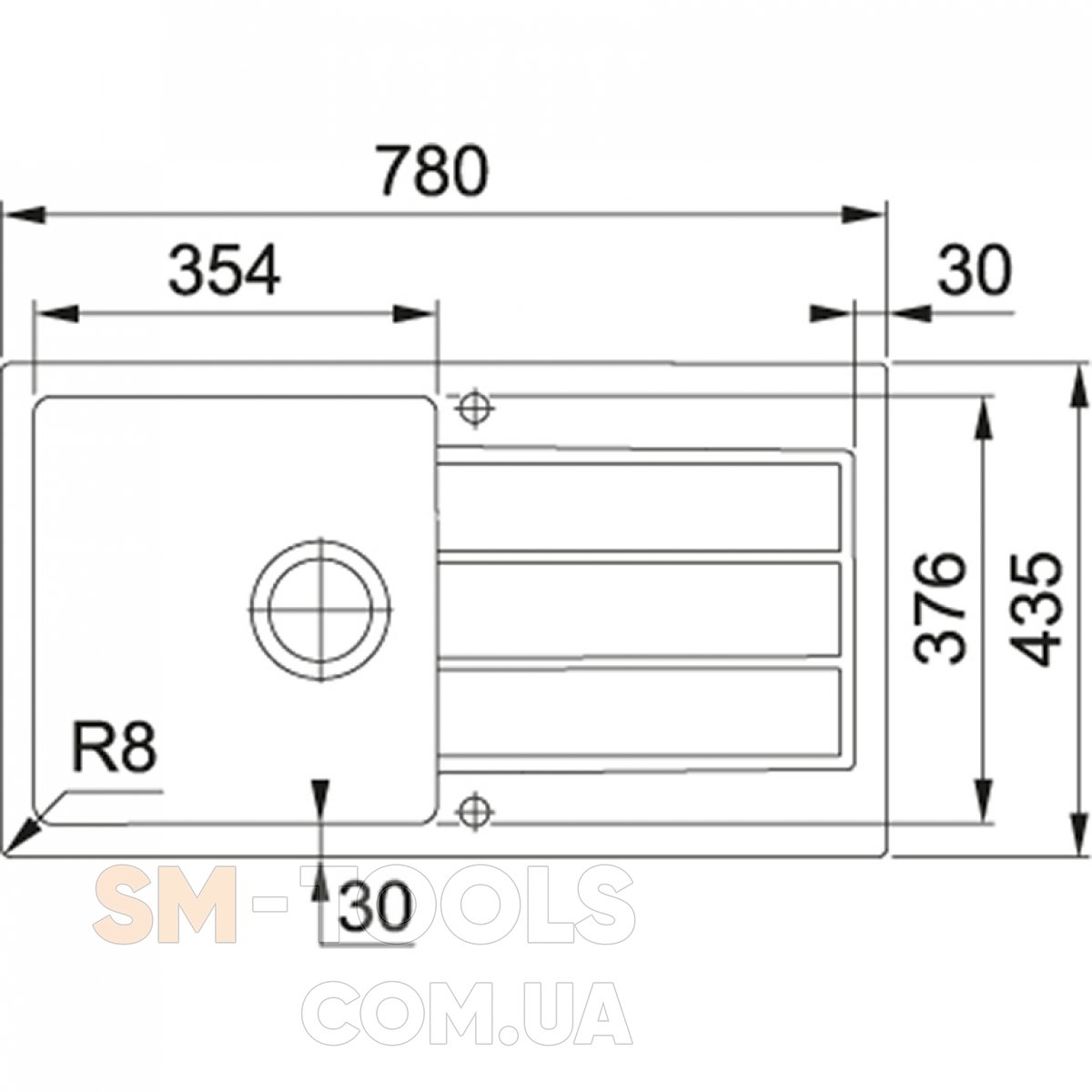 Размеры врезного отверстия (накладная) 760 x 415 мм