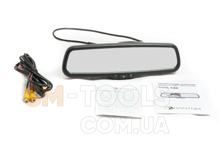 Зеркало заднего вида Phantom RMS-430-52 предназначено для подключения к бортовой сети автомобиля 12В, среднее потребление тока составляет 160мА.