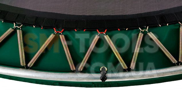 батут оснащен гибкими и прочными пружинами, изготовленными по технологии «Goldspring», способными выдержать вес даже взрослого;