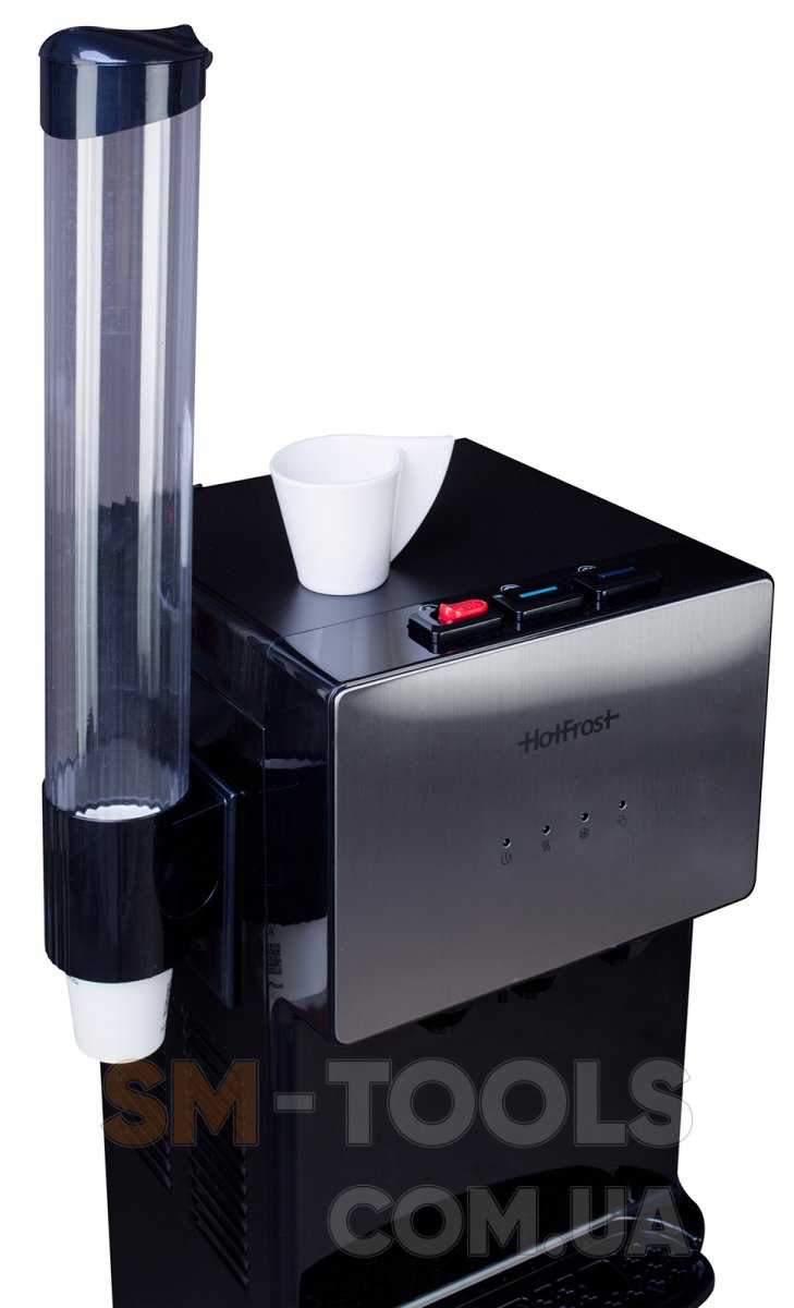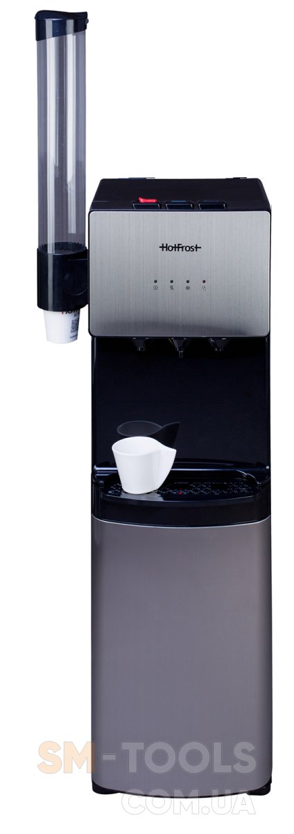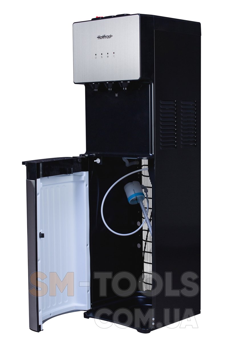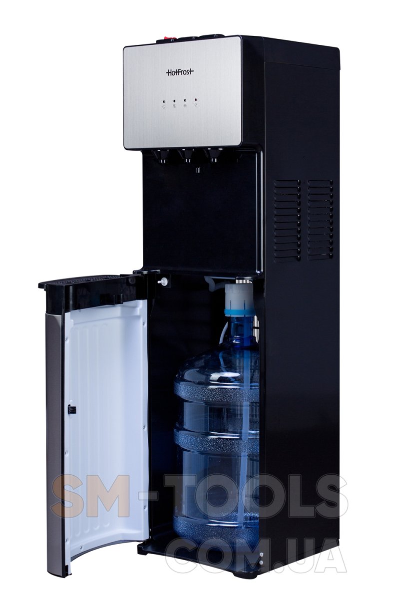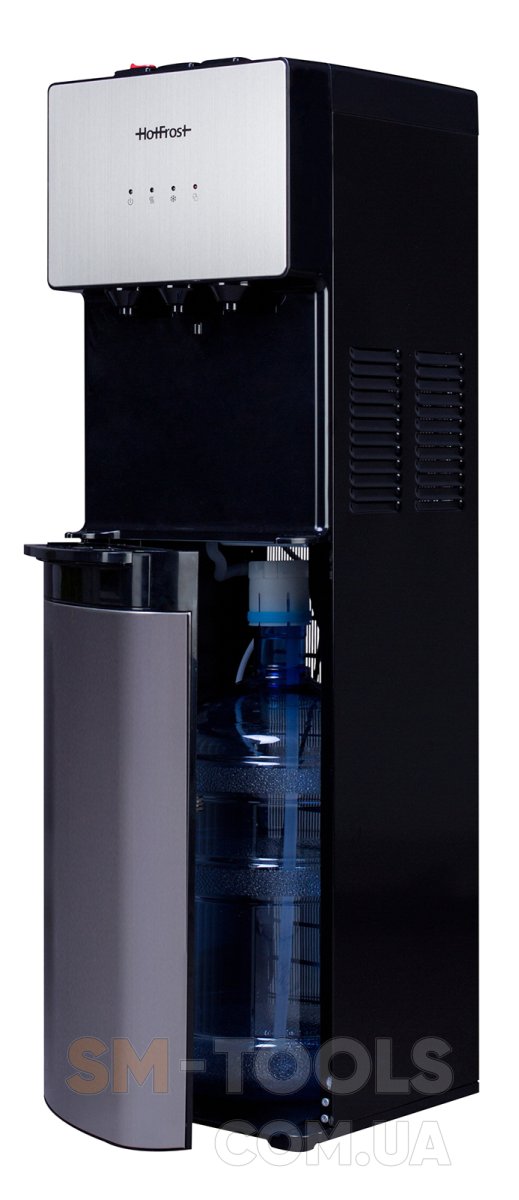 Бутыль с водой не нарушит дизайн вашего интерьера, так как располагается в нижнем шкафчике кулера HotFrost 400AS.